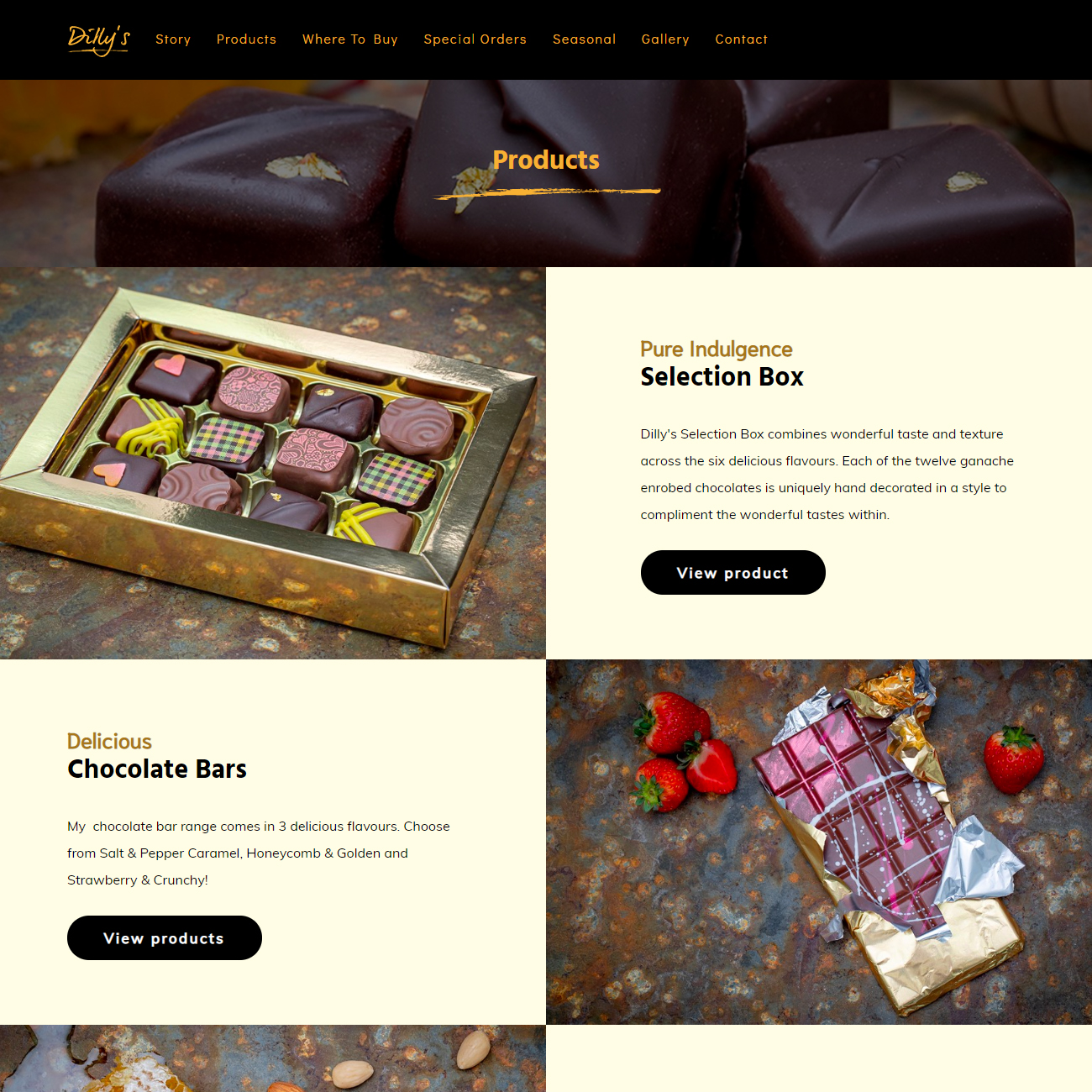 The website needed to showcase Dilly's products, making effective use of the luxurious photography throughout the site. The homepage would need to include a slider and prominent images and products throughout, as well as displaying customer testimonials and other important information. Other pages to be managed and created including various information such as My Story, Seasonal and Special Orders, a Gallery, and a full Product Catalogue.